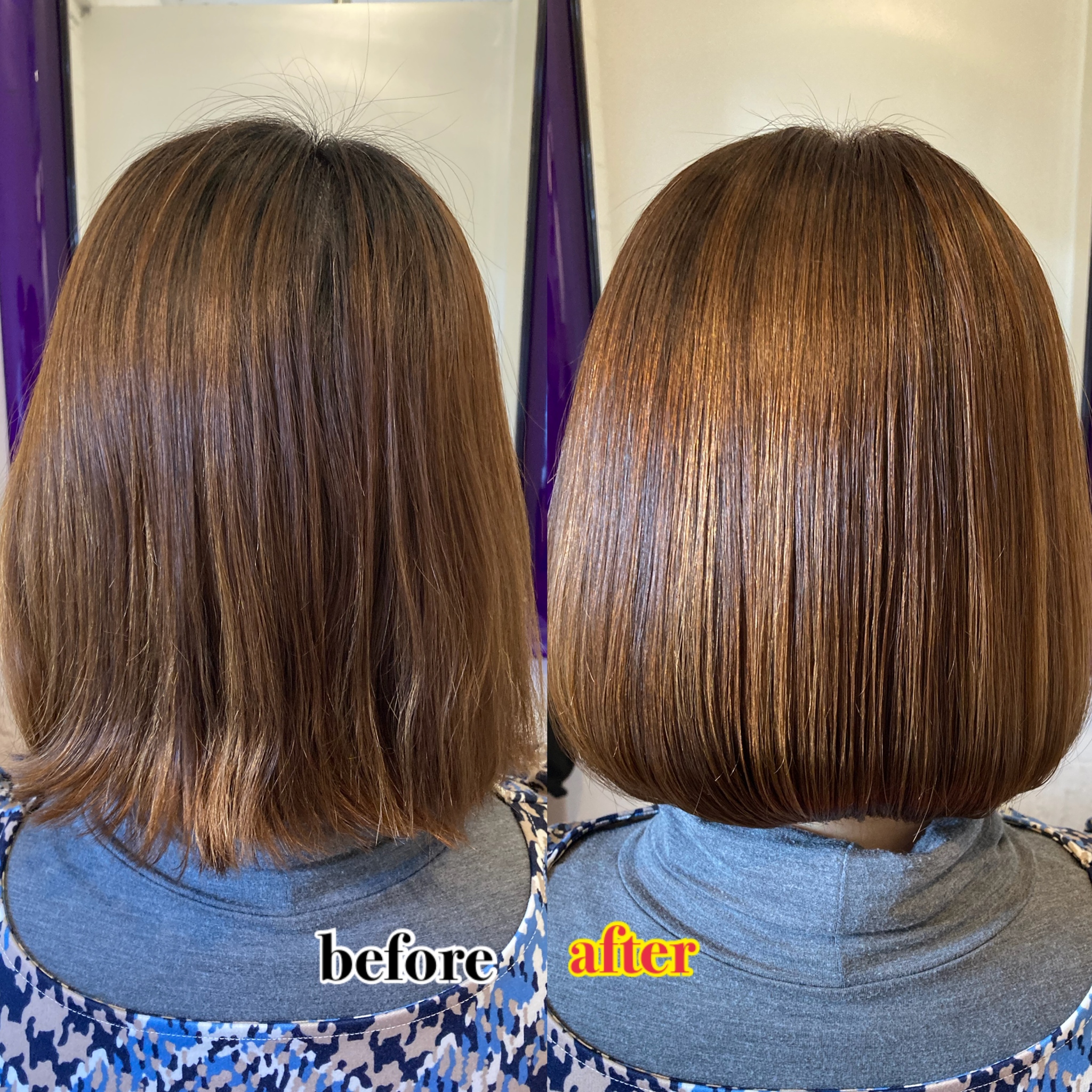 守山店のストレートエステの施術実績 dearsmoriyama 2025年4月5日 こちらのお客様は、クセでの広がり・うねり・軟毛・全体的な乾燥(パサつき)がお悩みでした。 ご来店されましたときは、クセの広がり・薬剤でのダメージでまとまりにくくなっておりました。 薬剤と一緒に栄養分をしっかりと入れさせて頂き、クセをしっかり伸ばし改善させて頂きました。 ドライだけで、ツヤがありまとまりの良い髪になりました。