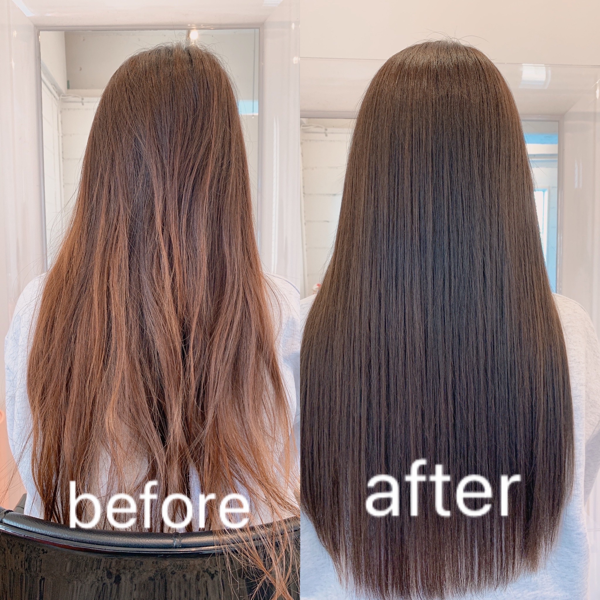 こちらのお客様は定期的に当店に通って頂いてますが紫外線、季節の乾燥やヘアアイロンの使用によって髪がパサつく、イエローに退色するというお悩みがありました。