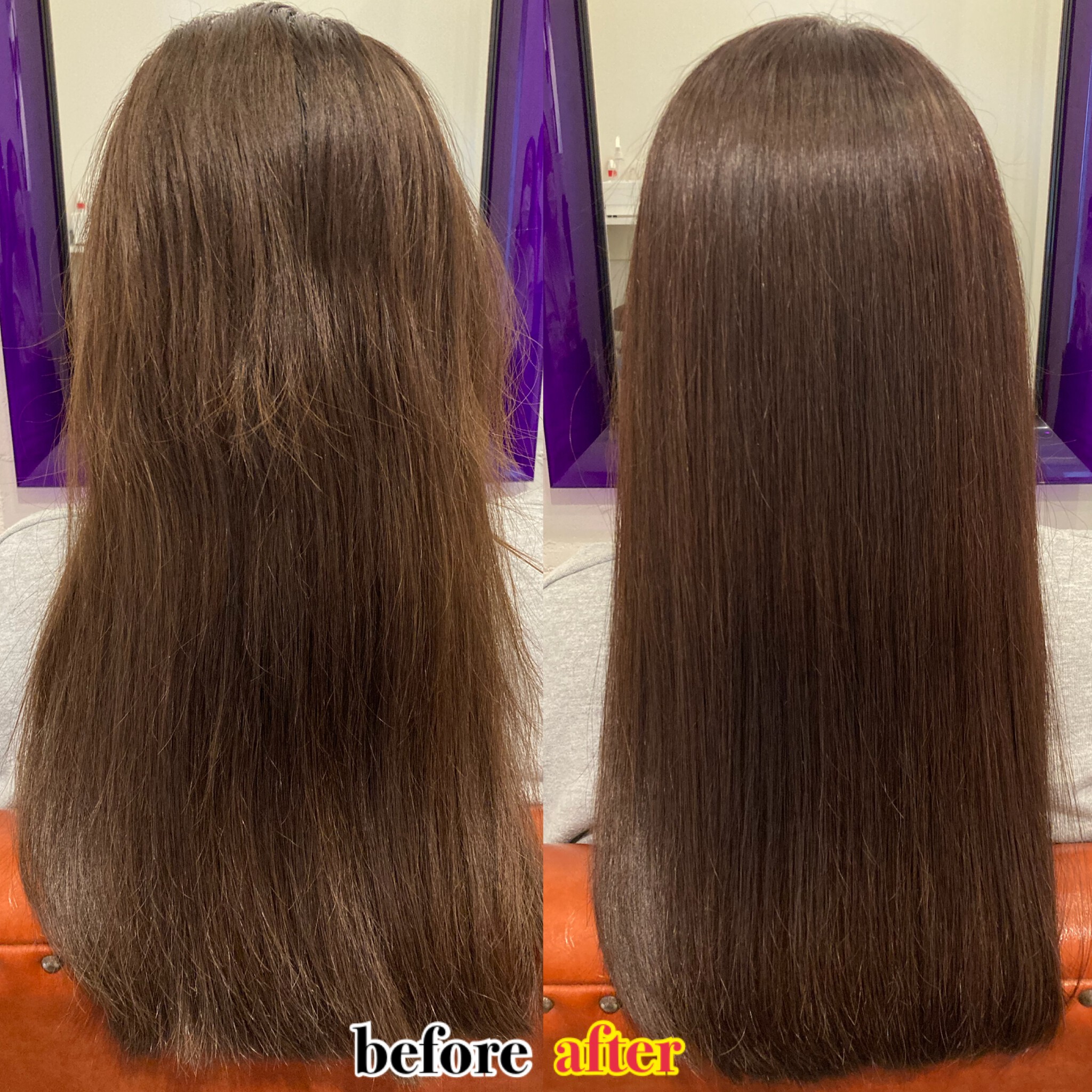 守山店のカラーエステの施術実績 dearsmoriyama 2025年11月5日 こちらのお客様は、薬剤でのダメージ・うねり・全体的な乾燥(パサつき)がお悩みでした。 ご来店されましたときは、薬剤でのダメージでまとまりにくくなっておりました。 薬剤と一緒に栄養分をしっかりと入れさせて頂き、しっかりと改善させて頂きました。 ドライだけで、ツヤがありまとまりの良い髪になりました。