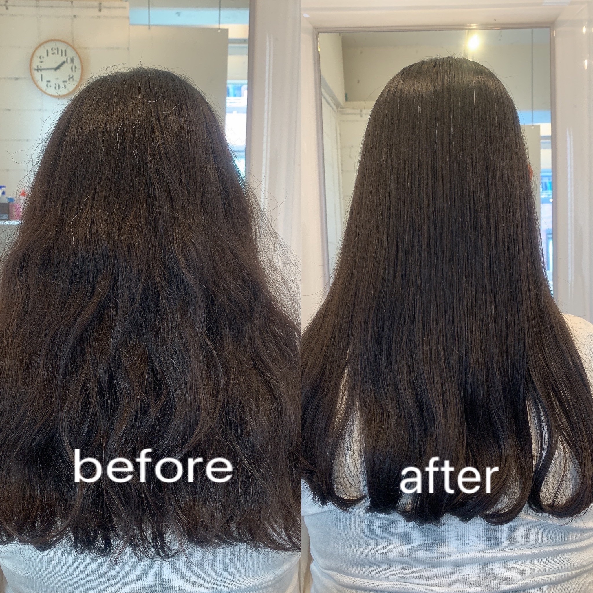 仕上がりは癖毛によるうねりは解消され、見た目も髪に艶感が増し、まとまりのある髪質へと改善されました。