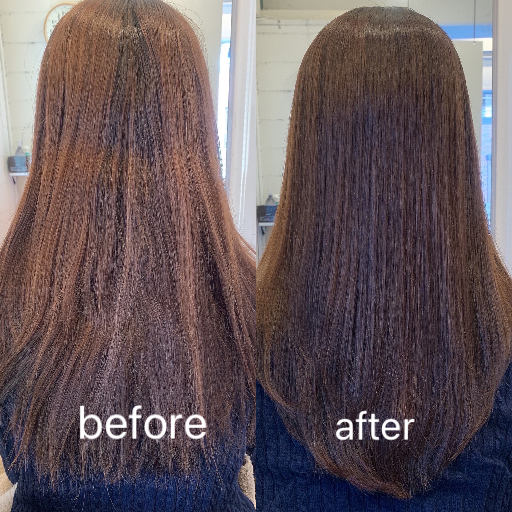 仕上がりは癖毛によるうねりは解消され、見た目も髪に艶感が増し、パサつきの無い髪質へと改善されました。